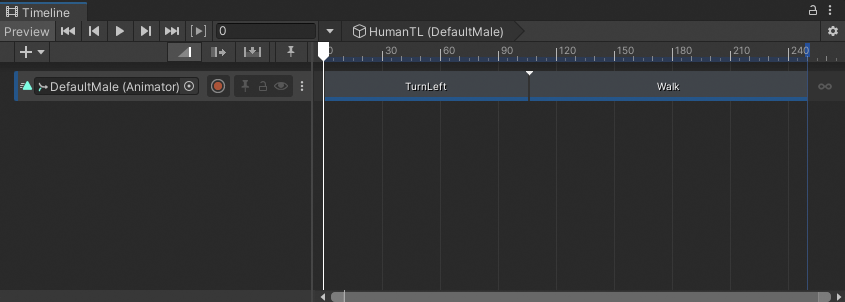 This workflow uses the humanoid model named DefaultMale and animation source assets from the Gameplay Sequence sample for its examples. Consult Timeline Samples for information on the samples available from the Timeline package and how to import these samples into your projects.