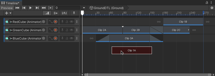 The ghost of the selection being moved is drawn in red if you attempt to move a clip to an invalid area