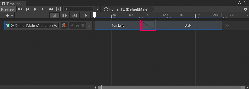 Play the Timeline instance again. Although the position and rotation of the humanoid matches, there is still a jump between the two Animation clips because the humanoid is in different poses: