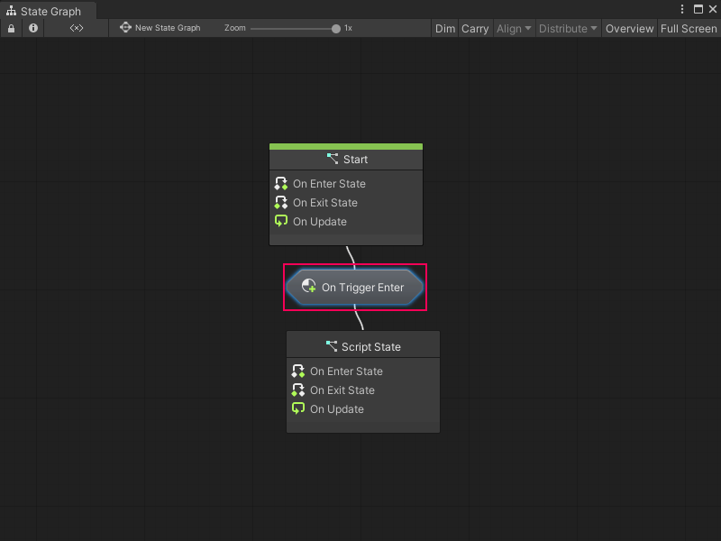 For example, the following transition Script Graph switches states after a GameObject with the Player tag enters a trigger Collider.